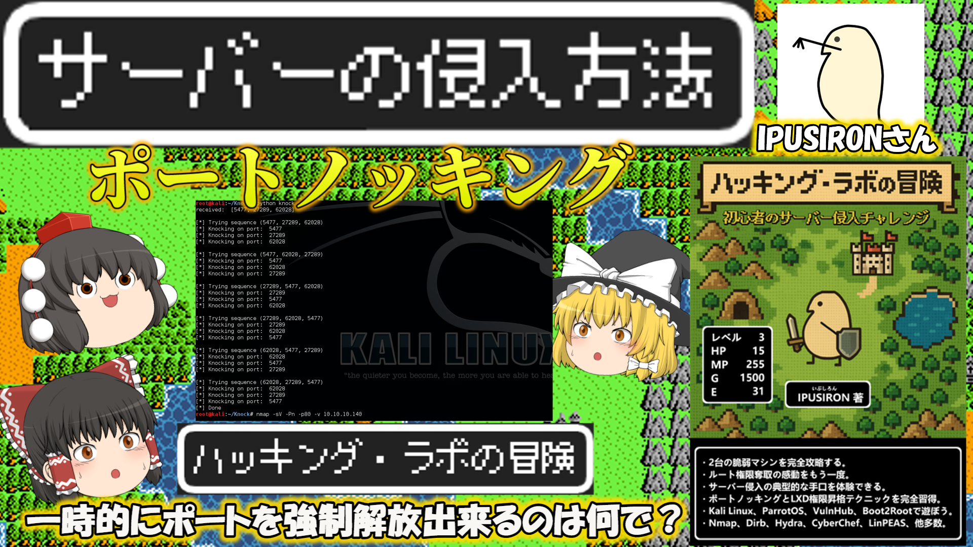 【サーバ侵入方法】ポートノッキングとは?摩訶不思議?一時的にポート解放が出来る仕組み!IPUSIRONさんの書籍「ハッキング・ラボの冒険」 No.186
