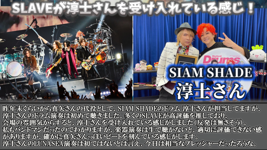 ドラムの代役はSIAM SHADEの淳士さん