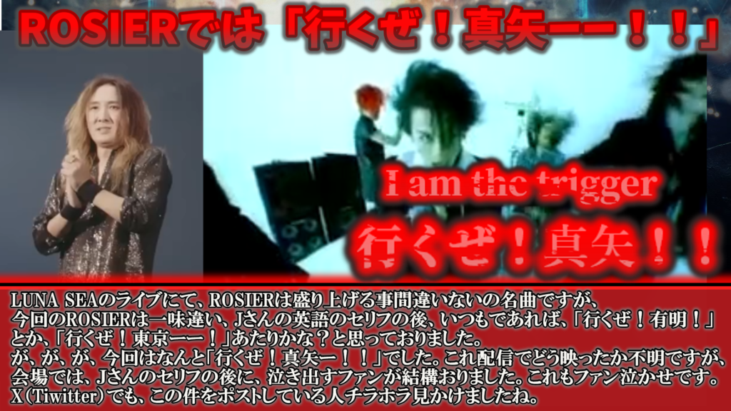 しかも、ライブ最後のツアー発表の際にも真矢さんの映像と共にI for YouのクラシックVerが流れており、泣き出すファンがおりました。