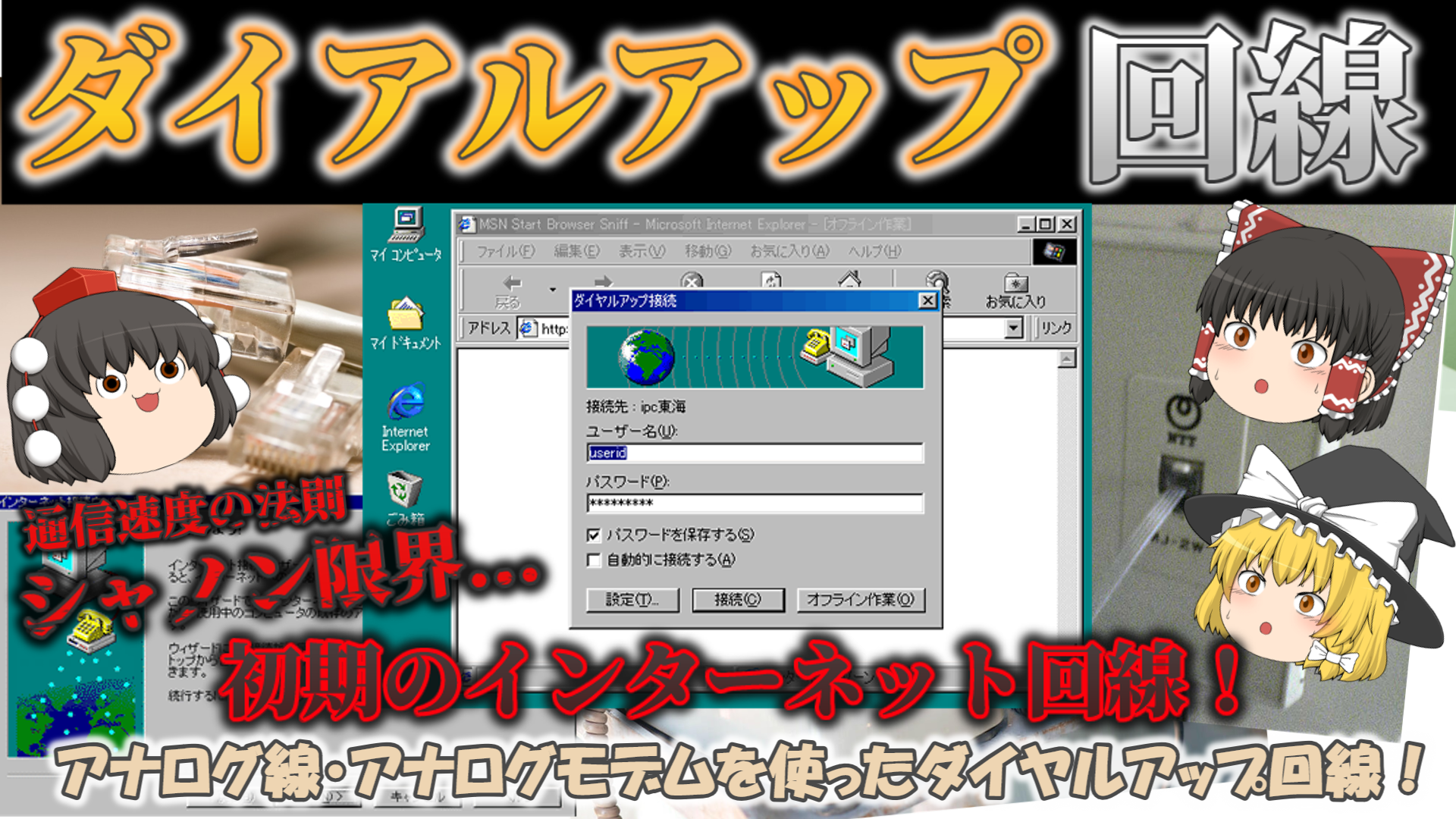 【初期のネット回線】ダイアルアップ回線とは?電話回線を使ったアナログ通信!Windows95の登場で普及!通信速度の法則「シャノン限界」とは? No.185